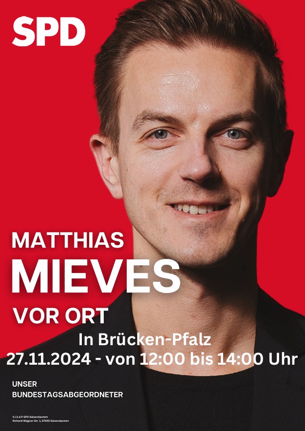 Bereits im Sommer war Matthias Mieves, unser Abgeordneter in Berlin, zu Besuch bei uns in Brücken. Nun kommt er erneut und möchte mit den Menschen ins Gespräch kommen. Wir werden gemeinsam durch Brücken spazieren und freuen uns Sie zu treffen. Sprechen Sie uns an, Matthias Mieves und der SPD-Ortsverein freuen uns auf gute Gespräche.
