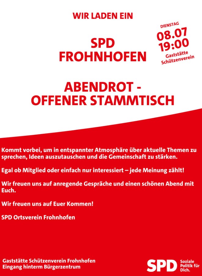Wir laden Euch herzlich zu unserem offenen Stammtisch ein, dem "Abendrot"!
