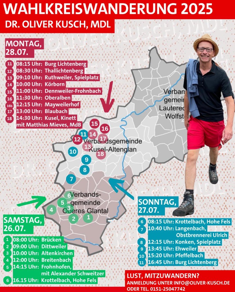 Ich freue mich auf Begegnungen mit Euch und Ihnen auf meiner diesjährigen Wahlkreiswanderung!